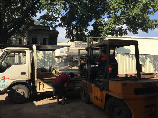 2015年10月9日,創(chuàng)世強(qiáng)又出貨了,番禺客戶購(gòu)置了一臺(tái)9磨頭斜邊機(jī)。